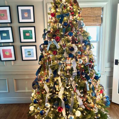 Hi friends! So excited to share our Christmas tree with you today. I was inspired by the “Ralph Lauren Christma” trend that is everywhere this year to create a very preppy tree! I have always used traditional Christmas colors and plaids so this trend has been so fun to talk about. Merry merry! Heather