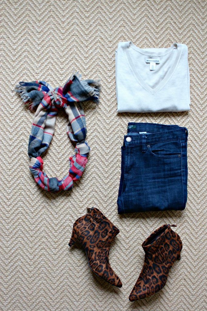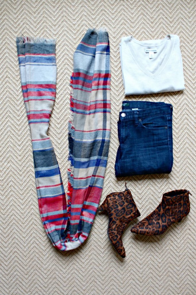 This method for tying a scarf really came out of necessity! I was participating in the Style My Closet Challenge and the theme for the day was “Mad for Plaid”. I really wanted to go for it and wear lots of plaid. But you may recall that we got a major heat spell here in Atlanta for the first part of October and there was no way I could justify wearing a scarf. So I decided to turn my scarf into a necklace… and here we are!