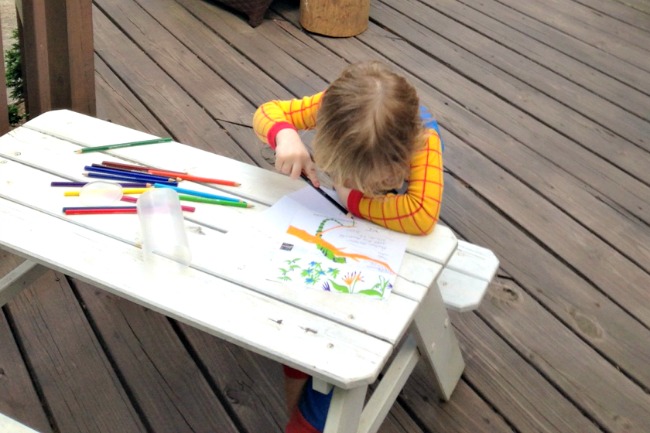 The picnic table is great for eating when his gang is over but we also do some arts and crafts out here.