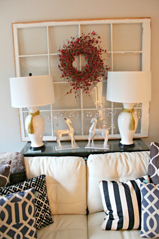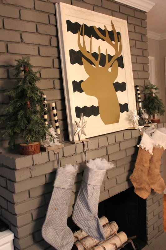 Looks so warm and cozy! I especially love your scarf wrapped moose and your decked out mantle! I especially love the combo of more rustic elements like burlap paired with bold black and white! It looks amazing!