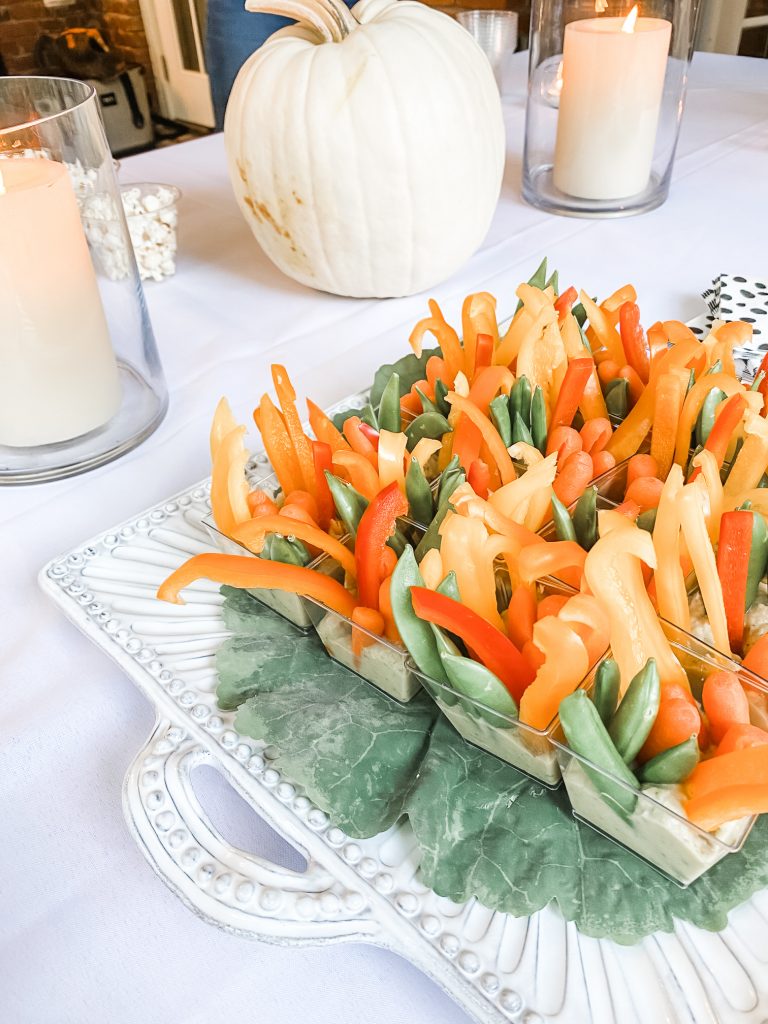 Speaking of school, we had a sweet socially distant Kindergarten Class Mom’s Night this week on a friend’s back porch. My friend made these cute individual veggie cups to serve and they turned out so cute! She really had a nice presentation! She said she used these cups from Amazon , used Giada’s White Bean Dip as the base and that lettuce on the platter is a reusable placemat. Genius!