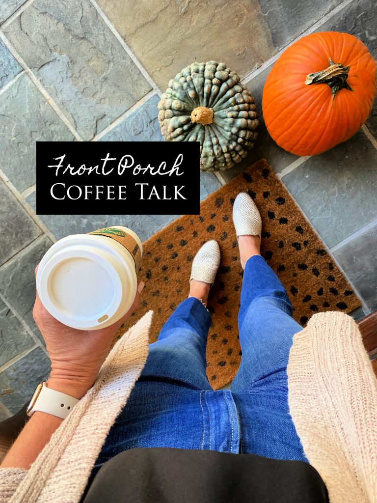 Happy Friday friends! Feeling so grateful to have made it through another week and able to enjoy this beautiful fall weather. This weekend is our fall break and it couldn’t come at a better time! I think we all could use a little break and downtime. I do think that after having so much down time this spring and summer it has been a much bigger adjustment to get back to feeling “normal” this fall. And who are we kidding, it really doesn’t feel “normal” at all. But we are just staying positive and doing our best. I do love this opportunity to have a brain dump here with you on the weekly Front Porch Coffee Talk … so grab your coffee and let’s “chat” sweet friends!