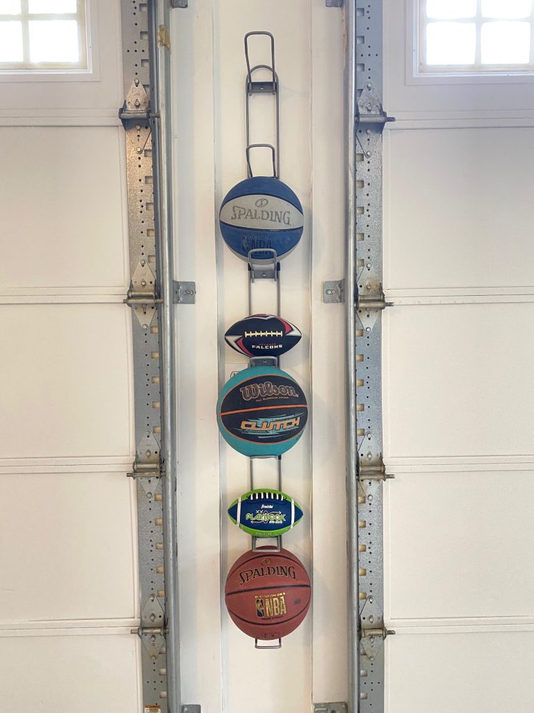 Not sure why it took us so long but we finally figured out a solution to store the balls in the garage. It is around $20 and absolutely perfect for corralling the balls! No more loose balls all over the garage floor!