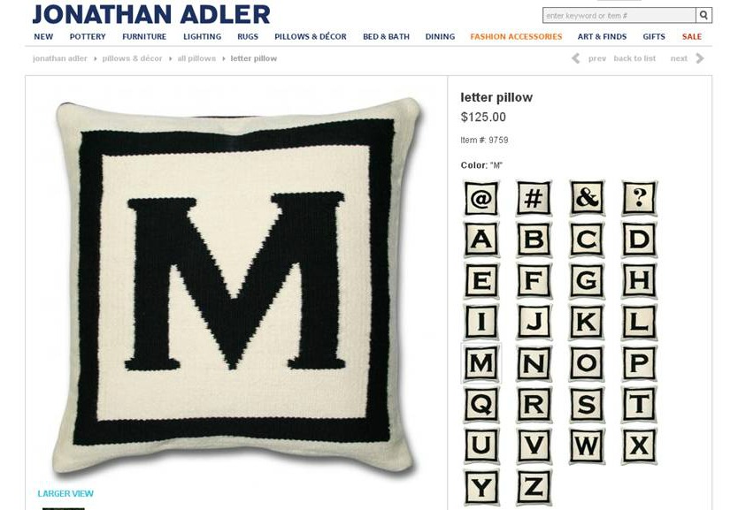 OK, so mine is not an actual needlepoint Jonathan Adler Initial Pillow.